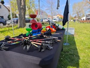 műsora. Mindenki kíváncsi, hogy milyen játszani a cirkuszi zsonglőr eszközökkel. Hosszú órákra is képes lekötni egy-egy komolyabb érdeklődőt. Rengeteg kelléket viszünk, hogy mindenki kipróbálhassa a számára megfelelőt. Egyszerűen minden fellelhető ami egy cirkuszi zsonglőr repertoárjában szerepel: Diaboló, Virágpálca, Zsonglőr labdák, Zsonglőr tányérok, Buzogány, Poi, Zászló stb.